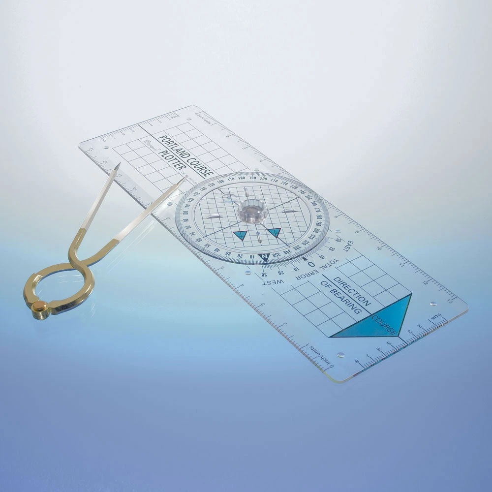 The Portland Course Plotter is one of the most popular chart work instruments and is widely used by RYA practical & shore based instructors. It provides a quick method of plotting course and bearings and gives a direct reading of corrections for magnetic variation. This new version has been developed in consultation with the RYA and has been engineered for both strength & fine accuracy.