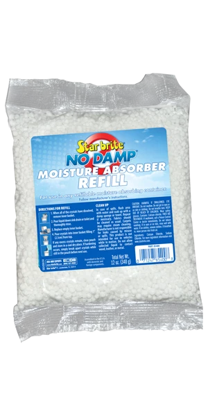 No Damp Dehumidifier is the effortless way to help control the excessive humidity that leads to musty odors, stains or corrosion aboard stored boats, RVs or seasonal homes. The special crystals automatically remove moisture from the air, depositing it safely in the convenient container. Great for cabins, heads, closets, and other enclosed spaces.