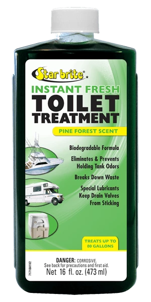 Instant Fresh Toilet Treatment is a simple one-step, highly effective way to deal with the boat’s holding tank that eliminates the need for multiple chemicals. This efficient, biodegradable formula quickly breaks down waste to remove potential odors, while leaving a light, pleasant scent behind. Additionally, special lubricants prevent drain valves from sticking. Also works in portable marine toilets.