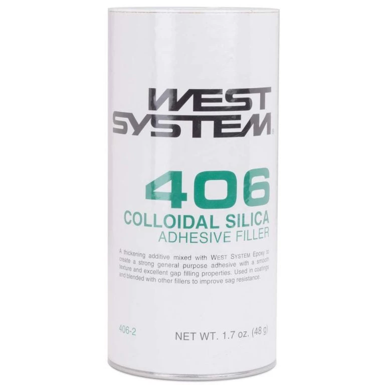 406 Colloidal Silica is an epoxy thickening additive used to control the viscosity of the epoxy and prevent epoxy runoff in vertical and overhead joints. This is a very strong filler that creates a smooth mixture, ideal for general epoxy bonding and filleting. It is also our most versatile epoxy filler. Often used in combination with other fillers, 406 can be used to improve strength, abrasion resistance, and consistency of epoxy fairing compounds, resulting in a tougher, smoother surface.