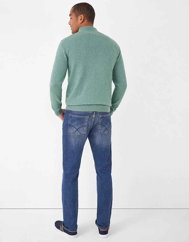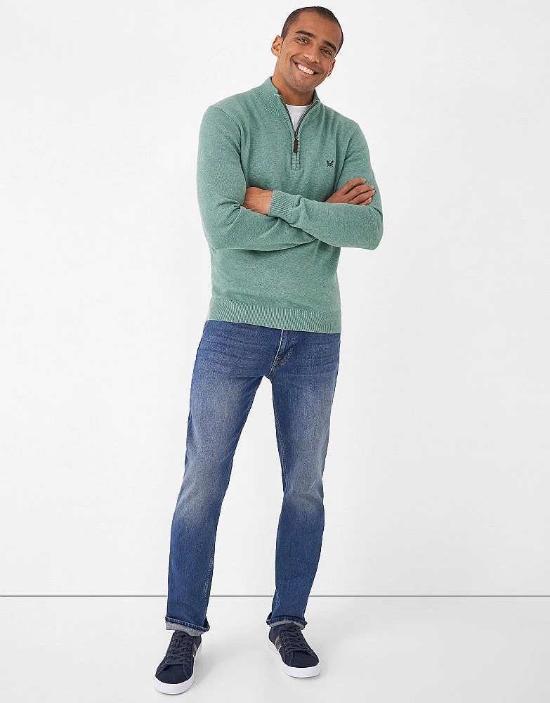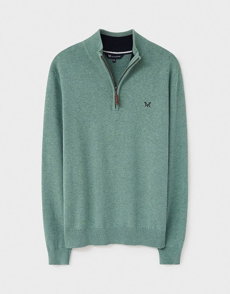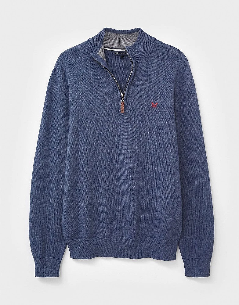 Our classic half zip knit in deep sea marl. This versatile jumper works as a layer or zip it up and wear on its own. Throw it on and go.