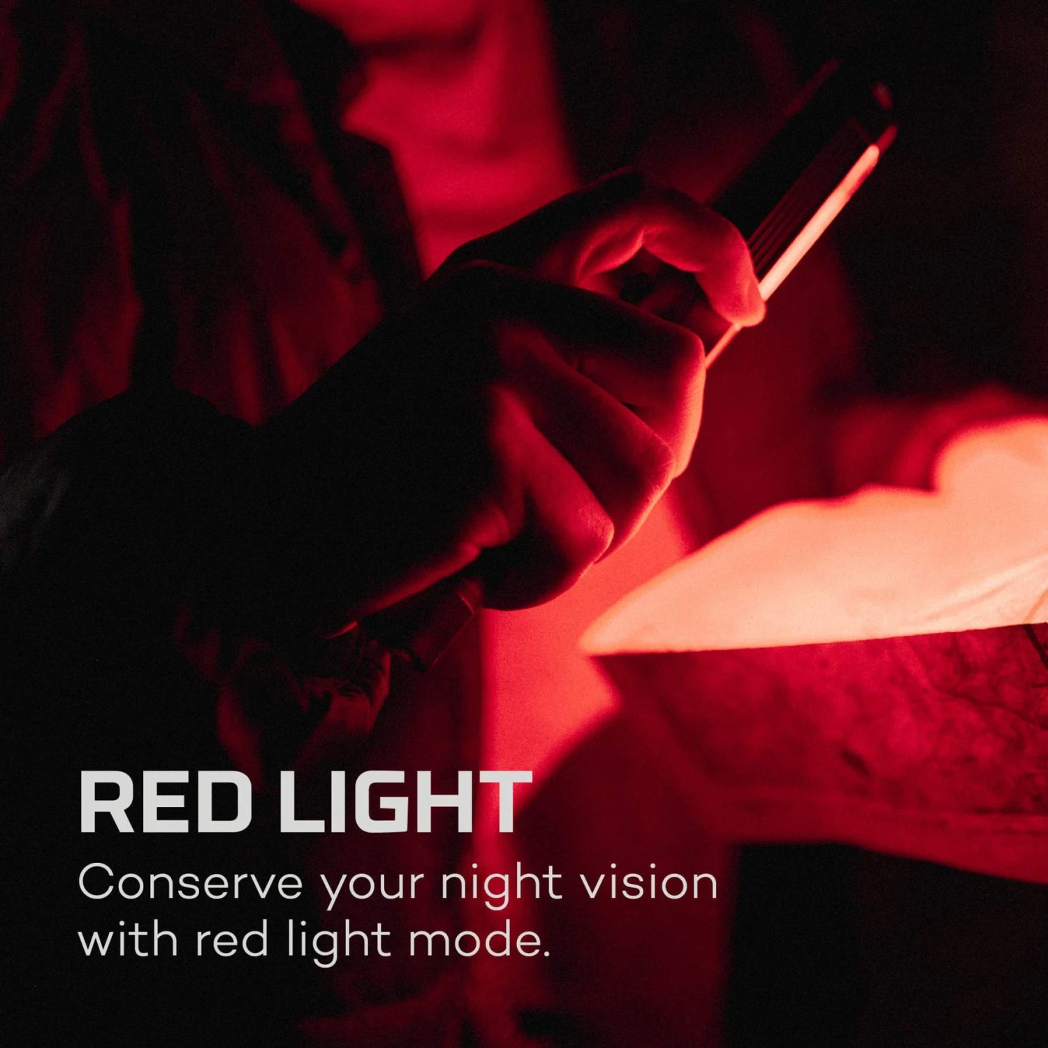 • Red Task Light High: (40 lumens) 20 hours / 7 meters
