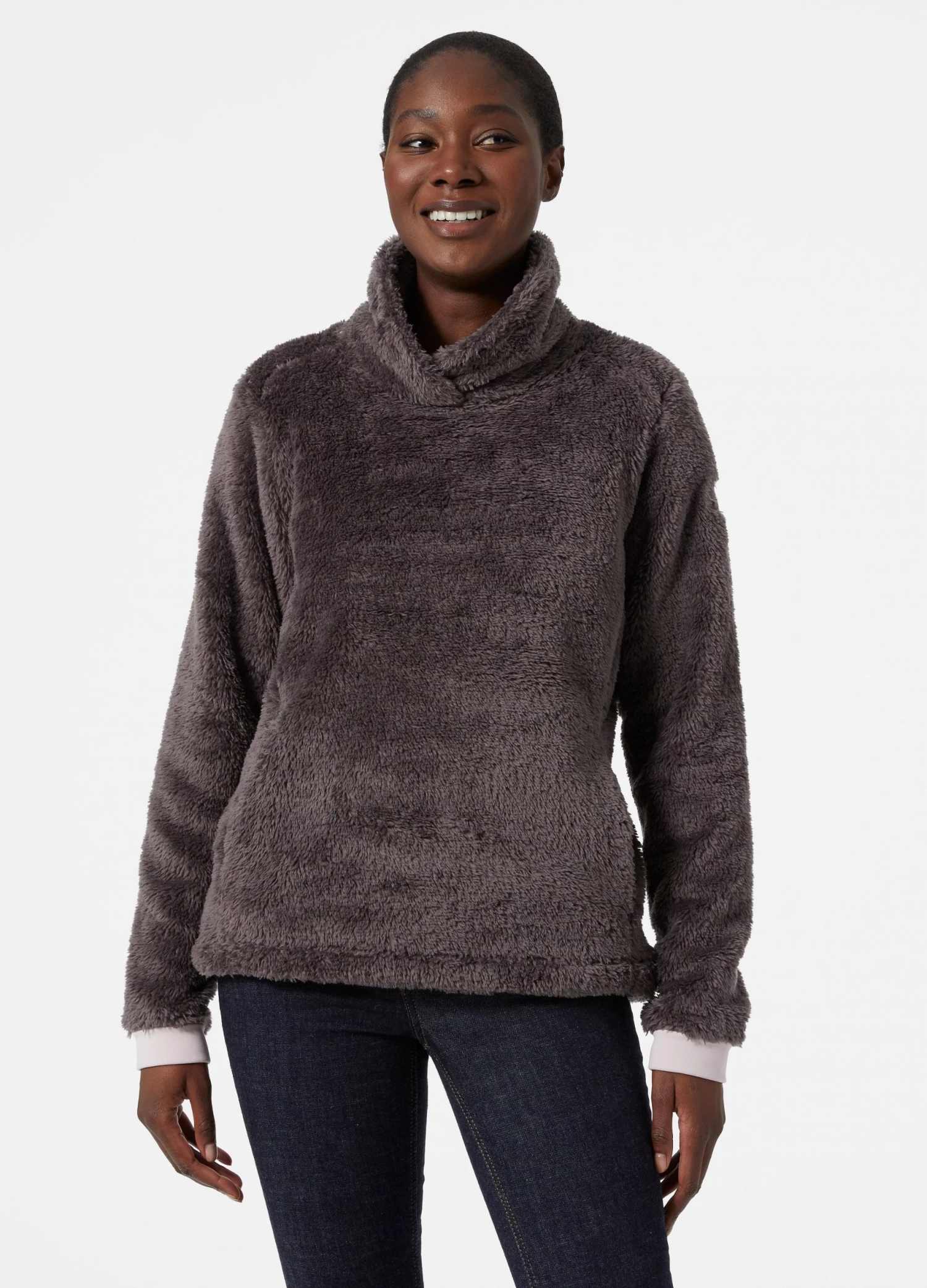 This cozy fleece midlayer has a stylish fold-over collar and streamlined silhouette. You’ll look great while staying warm. It’s made with 100% recycled polyester.