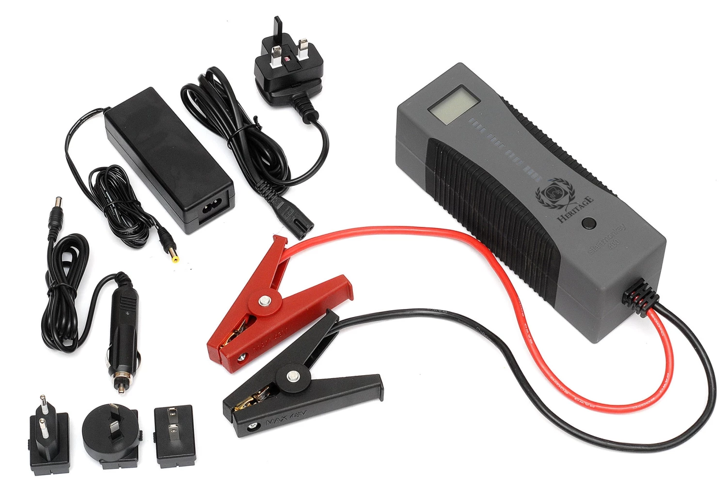 The Startmonkey400 features an LCD screen which indicates the condition of the battery. If the voltage is less than 6V, a manual override facility allows the Startmonkey400 to jump-start the car battery. Manual override is activated by depressing the black button twice in quick succession.