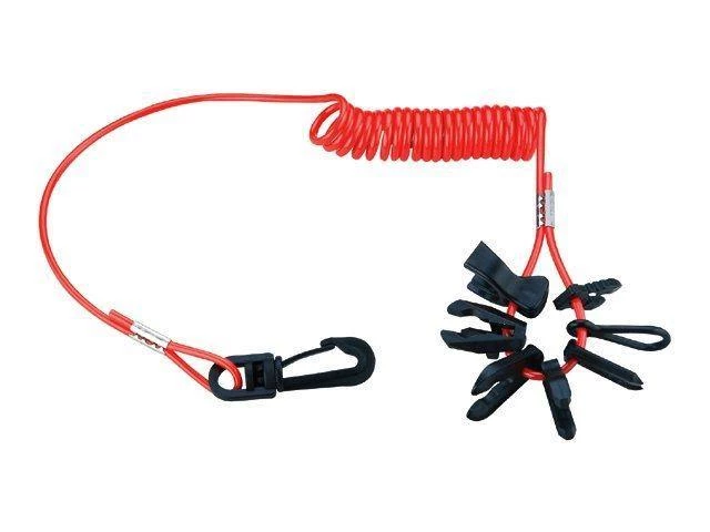 A dead mans/kill cord that has connections for nearly every brand of outboard engine: