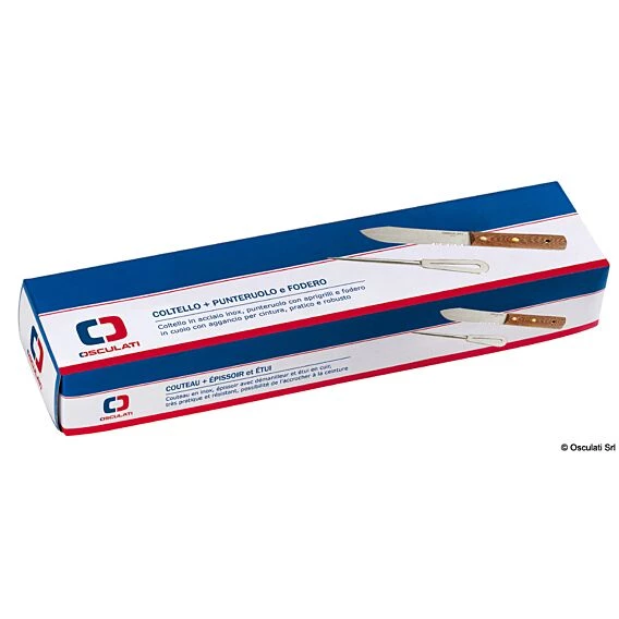 Stainless steel knife, fid and shackle key, very practical and sturdy leather cover with belt hook.