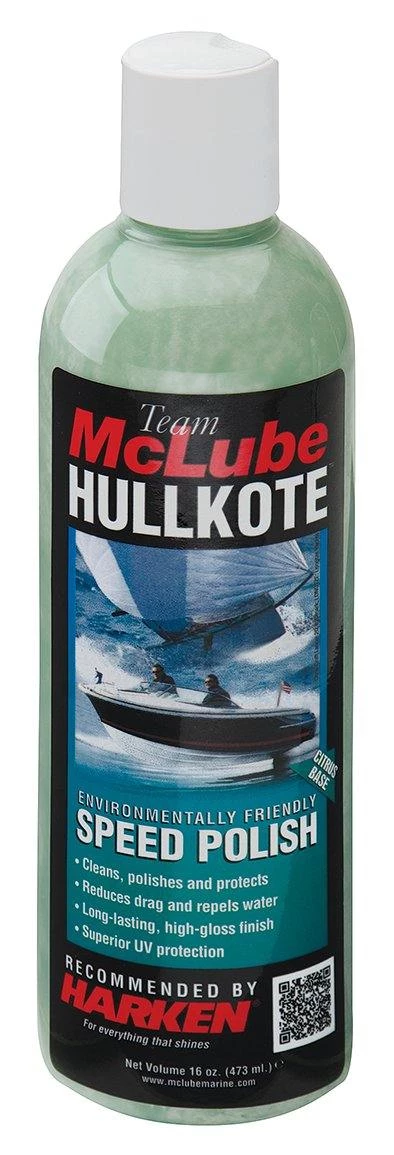 Hullkote combines the same very fast world renowned McLube proprietary formulation of our bonded PTFE suspension system with an entirely revolutionary citrus-based long lasting high gloss polish. The results have been remarkable, by all accounts.
