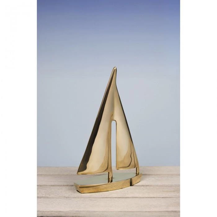 Boldly sculptured in polished brass, this counter-sterned, sloop-rigged yacht makes a stunning ornament. The subtle curves of the sails pick up light and reflections from surrounding objects to make constantly changing patterns. 23cm tall.