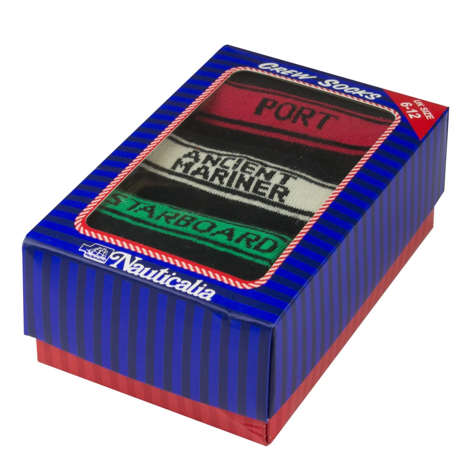Three pairs of our popular novelty socks – 2 pairs of Port & Starboard and 1 pair of Ancient Mariner – gift boxed together.