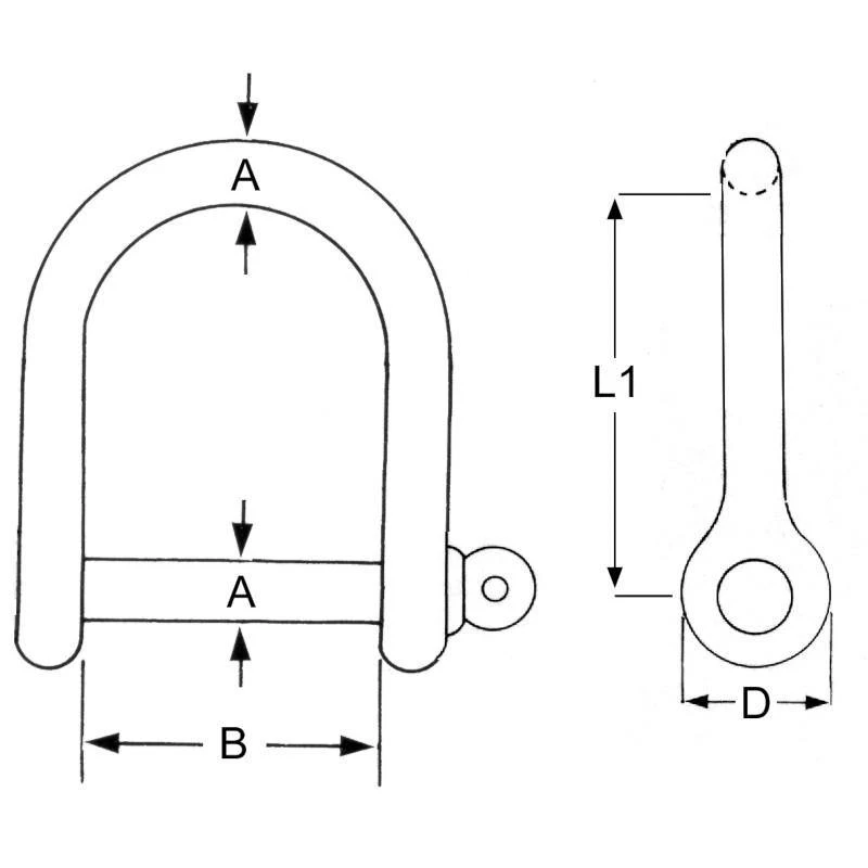 Standard stainless steel wide D shackle.