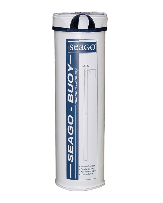 The Seago inflatable danbuoy is maintained like a lifejacket and can be repacked after use. Rearm using Manual 60g Kit.