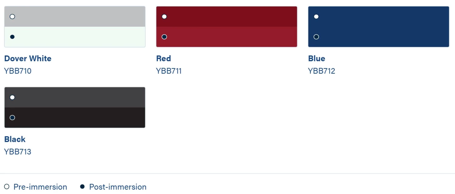 - Available in Dover White, Blue, Red and Black